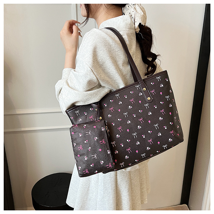 This tote bag is stylish, lightweight, and easy to carry. It comes with a matching pouch for your small items. The cute bow print design makes it perfect for everyday use, shopping, school, or casual outings. The bag has comfortable shoulder straps and a roomy inside to hold your essentials.