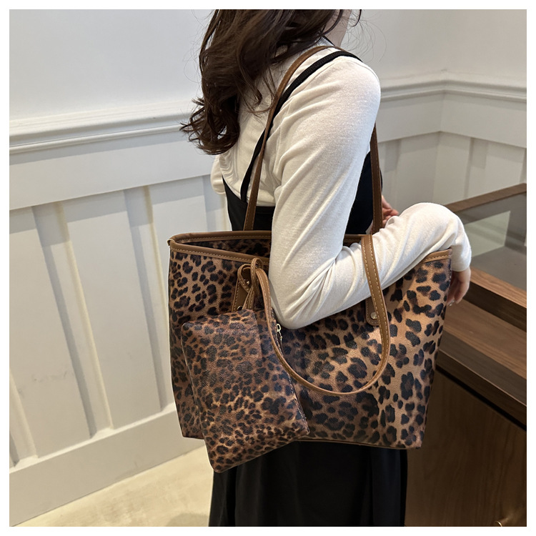This stylish leopard print tote bag is designed for fashion and convenience. Made with durable fabric and strong leather-like straps, it is perfect for everyday use. The spacious interior gives you enough room to carry your essentials, whether for work, shopping, or casual outings. It also comes with a matching mini pouch that can be used to store small items like keys, cards, or coins. The animal print design adds a bold and trendy touch to your outfit, making it both practical and fashionable.