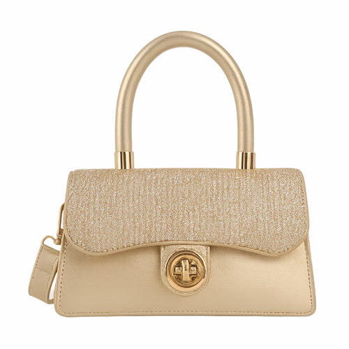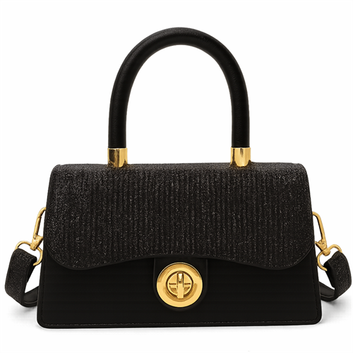 The Sparkle Luxe Handbag is a stylish and classy bag designed to add a touch of glamour to any outfit. It features a sparkling textured flap with a gold twist-lock closure that gives it a modern and elegant look. The bag comes with a firm handle and a detachable strap, allowing you to carry it as a handbag or wear it crossbody. Perfect for parties, outings, and special occasions, this bag combines simplicity with luxury to make you stand out effortlessly.