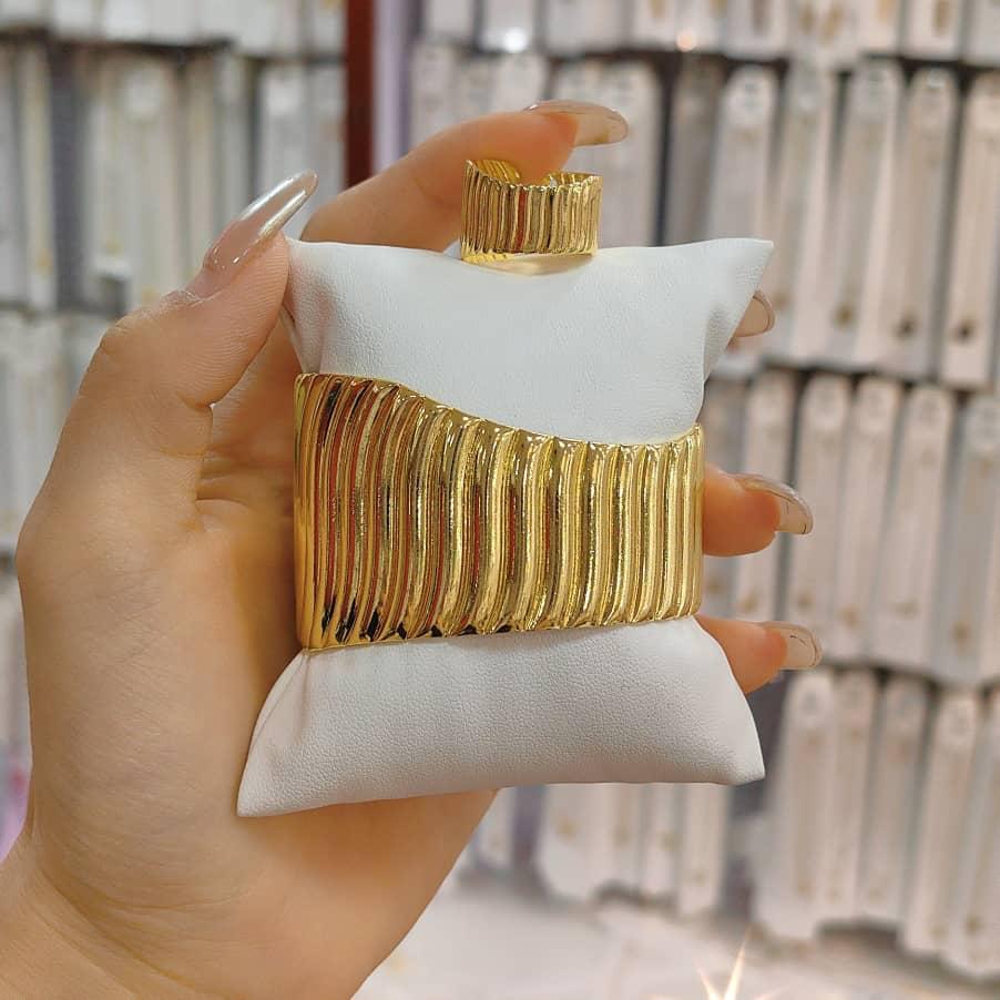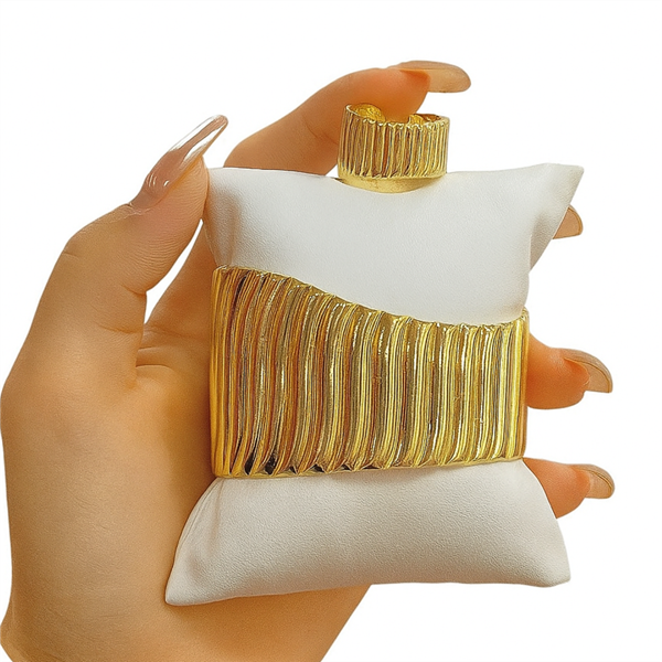 This elegant jewelry set includes a wide gold bracelet and a matching ring with a ribbed wave design. The shiny gold finish makes it stylish and eye-catching, perfect for both special occasions and everyday wear. Lightweight and comfortable, it adds a touch of class to any outfit.